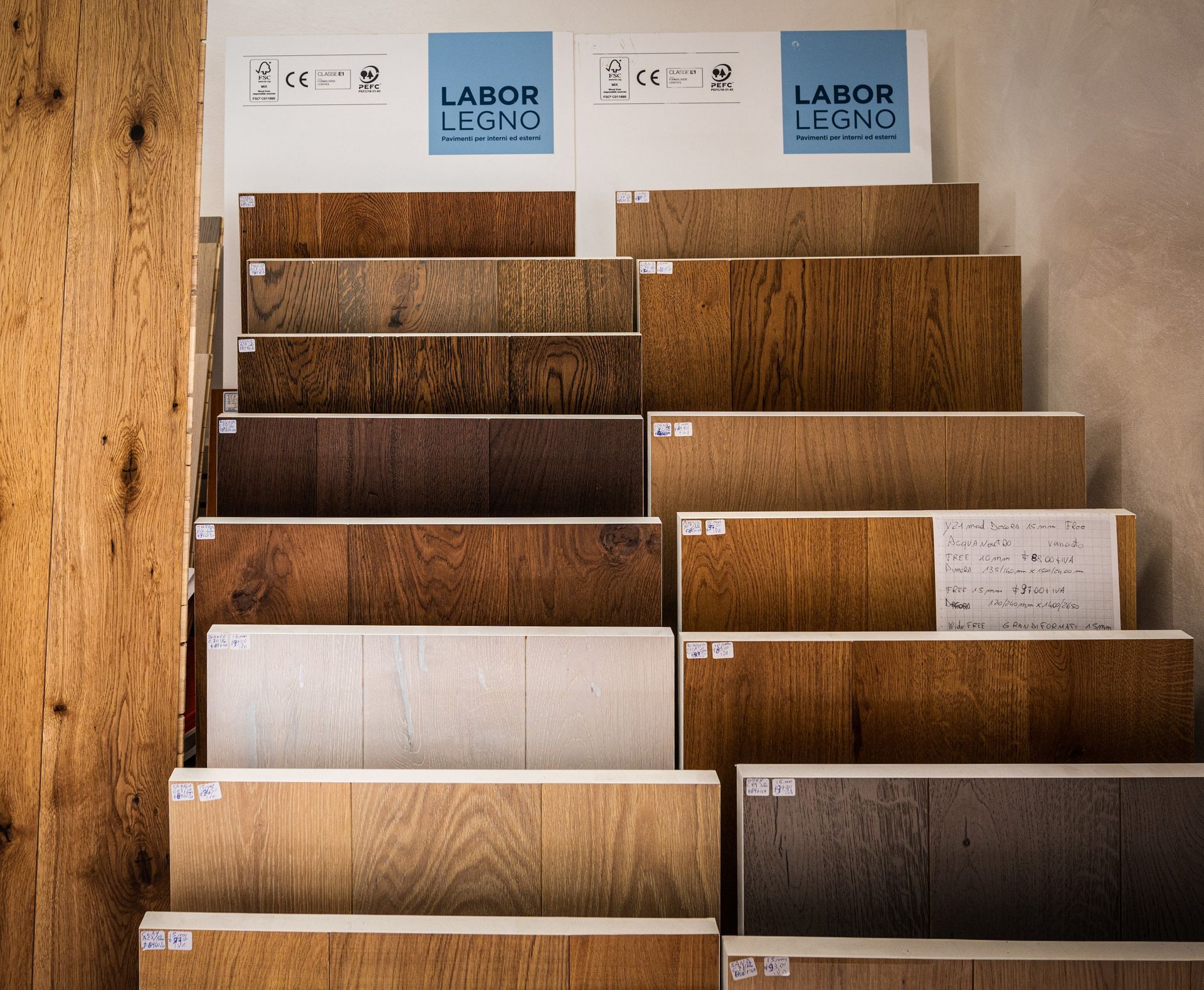 Oltre 250 decori tra parquet, SPC, laminati e moquette, tutti visionabili dal vivo.